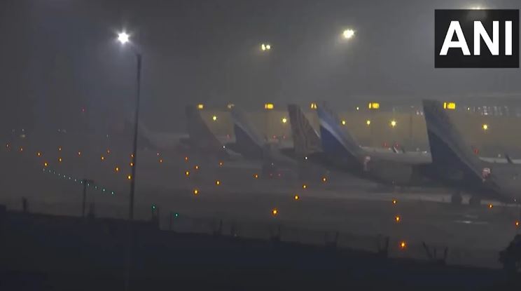 #WATCH | Delhi: Several flight operations delayed at IGI airport due to low visibility amid fog. pic.twitter.com/hGVXB7YThE
