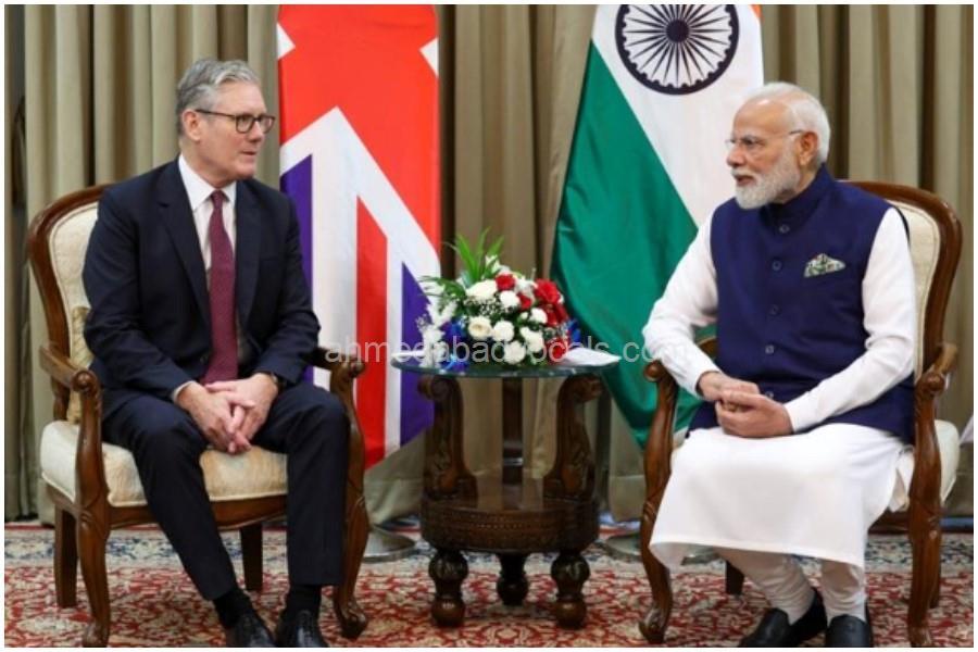 अहमदाबाद न्यूज डेस्क: प्रधानमंत्री नरेंद्र मोदी और ब्रिटेन के प्रधानमंत्री कीर स्टार्मर ने गुरुवार को मुंबई में प्रतिनिधिमंडल स्तर की बैठक की। बैठक के बाद आयोजित संयुक्त प्रेस कॉन्फ्रेंस में दोनों नेताओं ने द्विपक्षीय सहयोग के विभिन्न क्षेत्रों पर चर्चा की। खास बात यह रही कि कीर स्टार्मर ने हिंदी में अपनी बातचीत की शुरुआत की और भारतवासियों को दिवाली की अग्रिम शुभकामनाएं दी, साथ ही अहमदाबाद विमान हादसे पर दुःख व्यक्त किया।