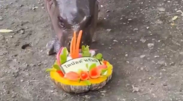 थाईलैंड के खाओ खियो में वायरल पिग्मी हिप्पो ने आज अमेरिकी चुनावों से पहले अपनी आश्चर्यजनक भविष्यवाणी के साथ चुनावी मैदान में प्रवेश किया। मू डेंग ने भविष्यवाणी की है कि डोनाल्ड ट्रंप 2024 के अमेरिकी राष्ट्रपति चुनाव में जीतेंगे। कल उस पल को वीडियो में कैद किया गया जब मू डेंग ने स्थानीय भाषा में ट्रंप के नाम से उकेरा हुआ तरबूज उठाया। ट्रंप के समर्थक मू डेंग की भविष्यवाणी से भले ही रोमांचित हों, लेकिन उनके साथी ने इस आयोजन में एक नया मोड़ लाते हुए जीत के लिए कमला हैरिस को चुना।