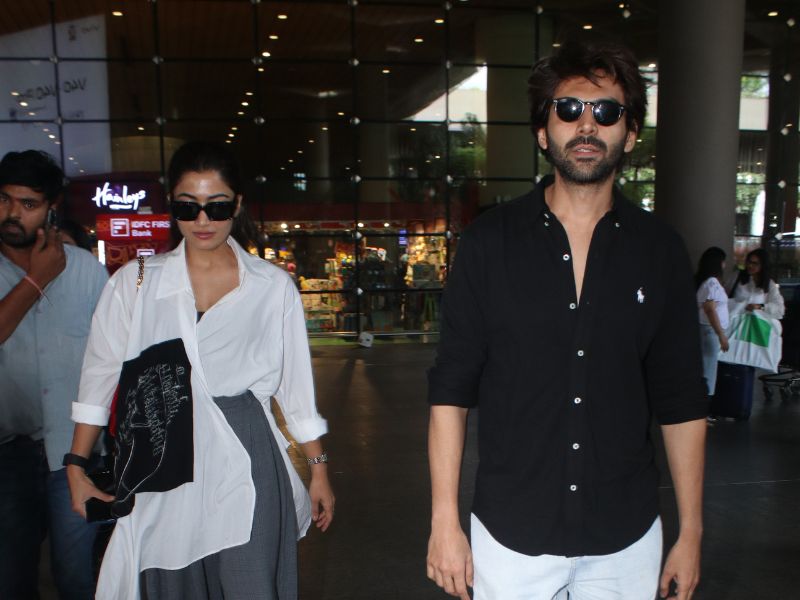 Kartik Aaryan And Rashmika Mandanna Spotted At Mumbai Airport